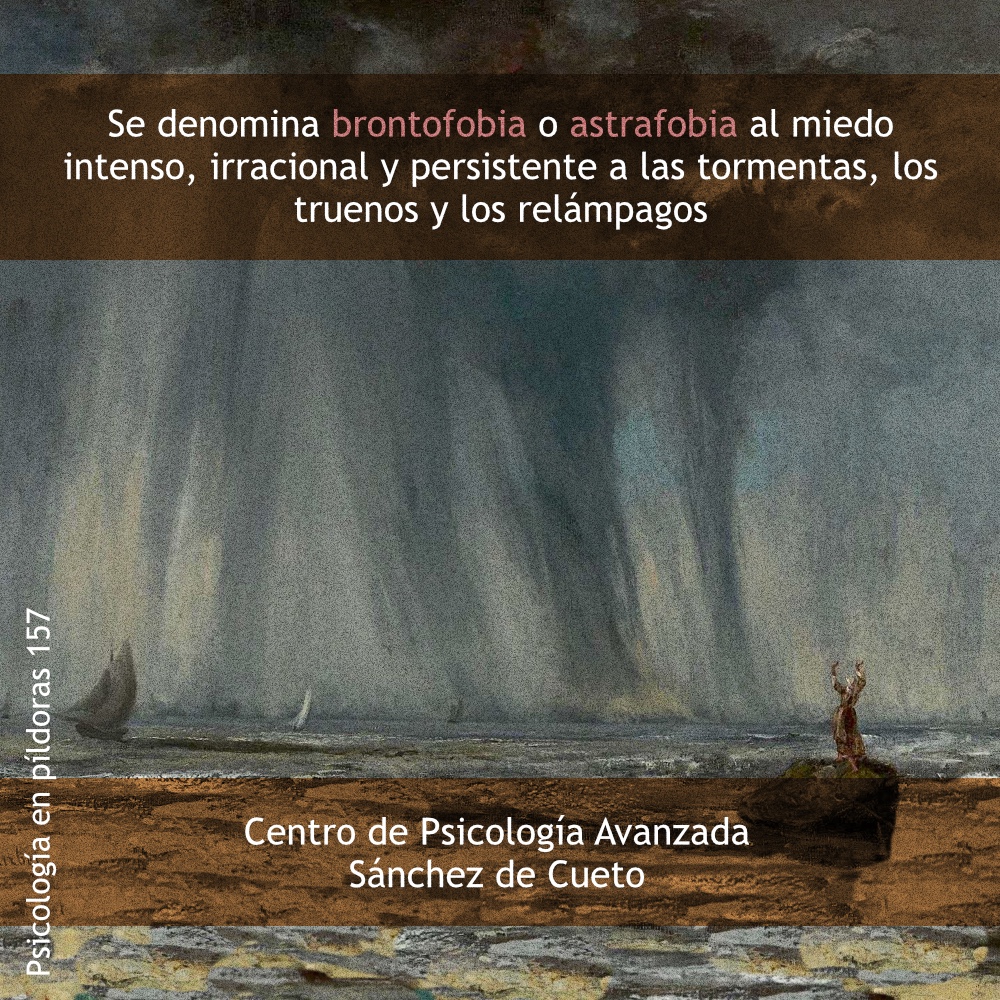 Se denomina brontofobia o astrafobia al miedo intenso, irracional y persistente a las tormentas, los truenos y los relámpagos