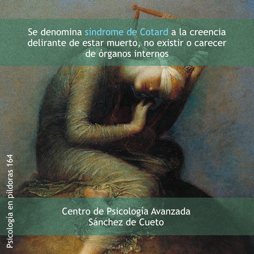 Se denomina síndrome de Cotard a la creencia delirante de estar muerto, no existir o carecer de órganos internos