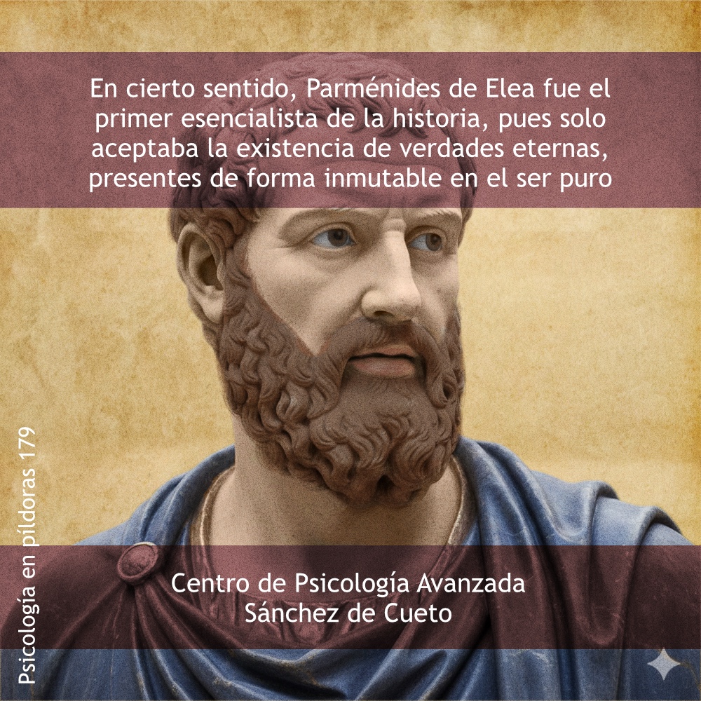 En cierto sentido, Parménides de Elea fue el primer existencialista de la historia, pues solo aceptaba la existencia de verdades eternas, presentes de forma inmutable en el ser puro