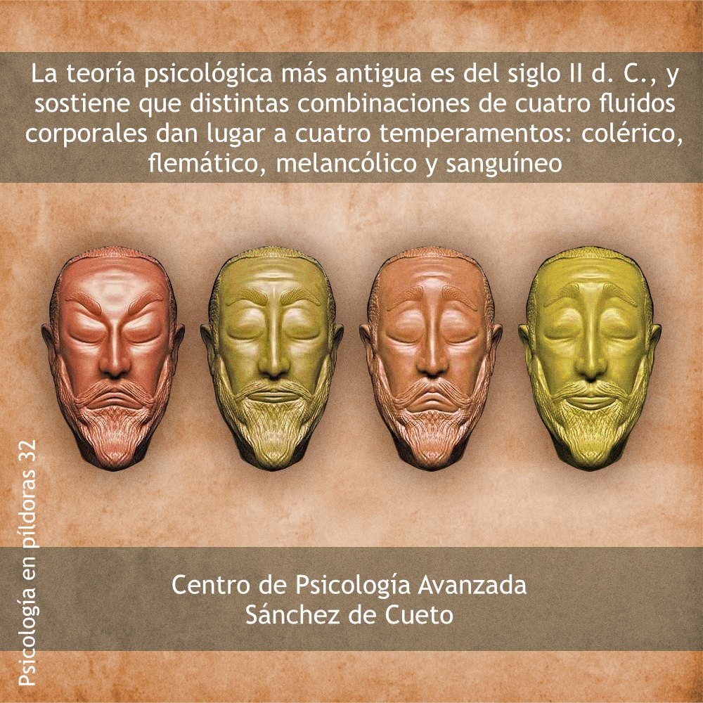La teoría psicológica más antigua es del siglo II d. C., y sostiene que distintas combinaciones de cuatro fluidos corporales dan lugar a cuatro temperamentos: colérico, flemático, melancólico y sanguíneo